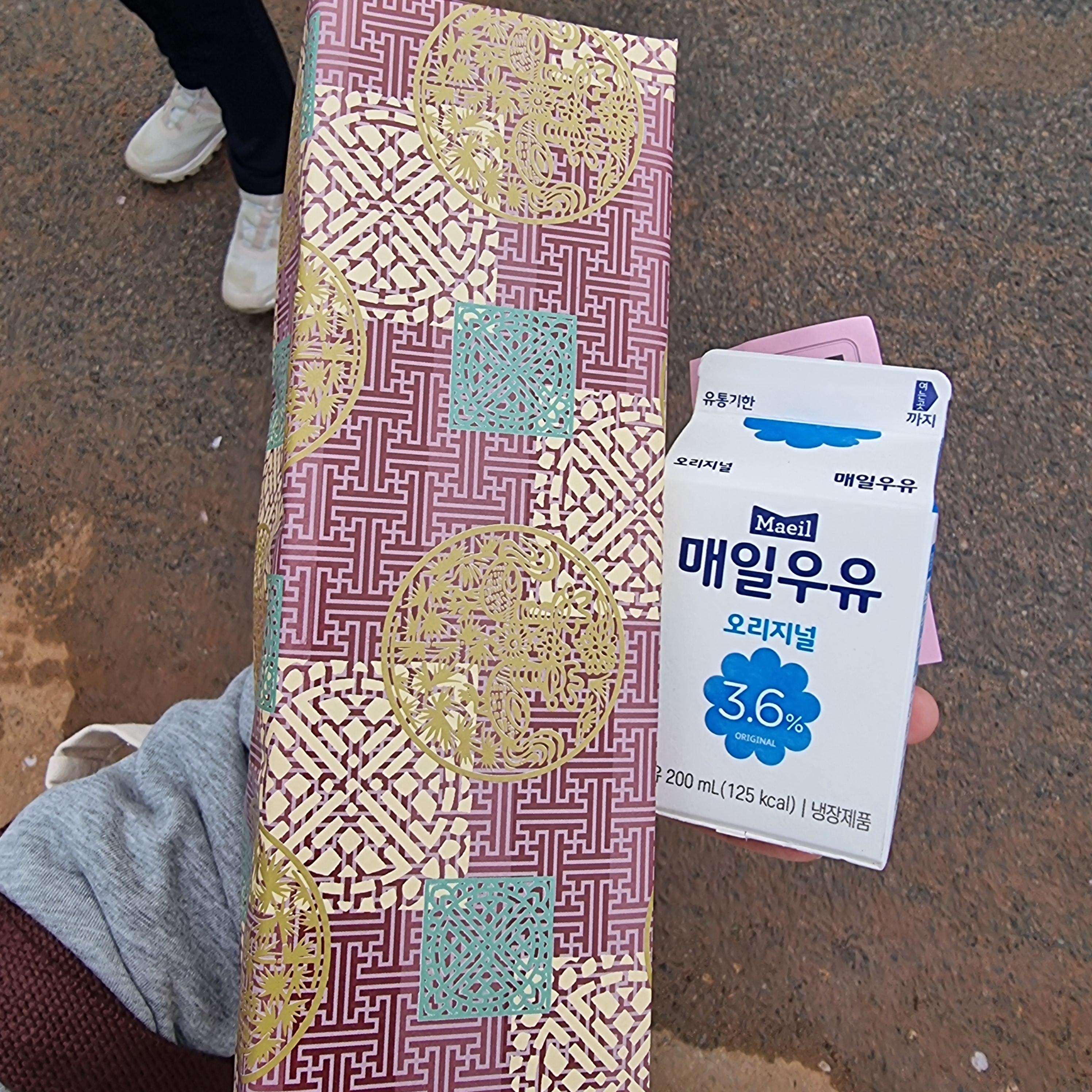 반환점에서 받은 우유와 텀블러