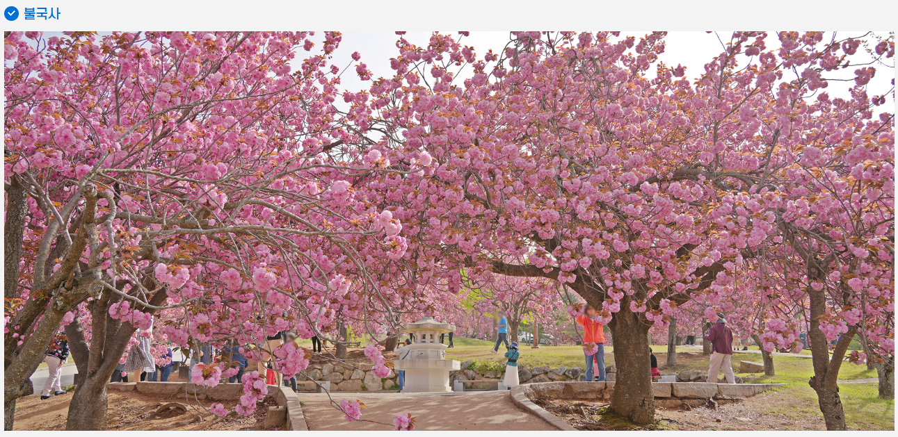 - 불국사 겹벚꽃: 약 300그루의 이상 겹벚꽃으로 장관 연출