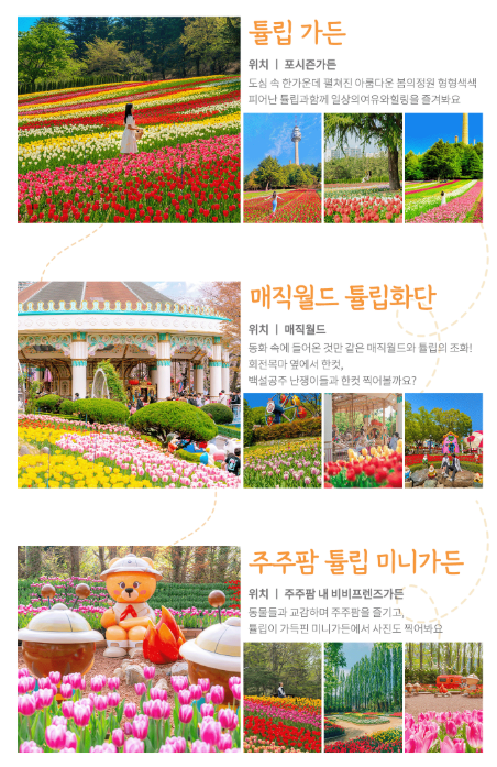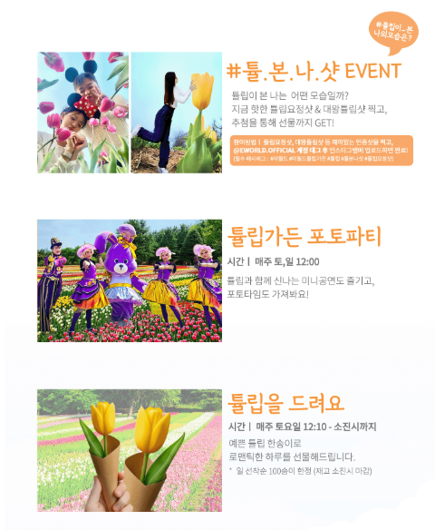 - 이월드 튤립축제 (4.5~27): 벚꽃 + 튤립 콜라보
