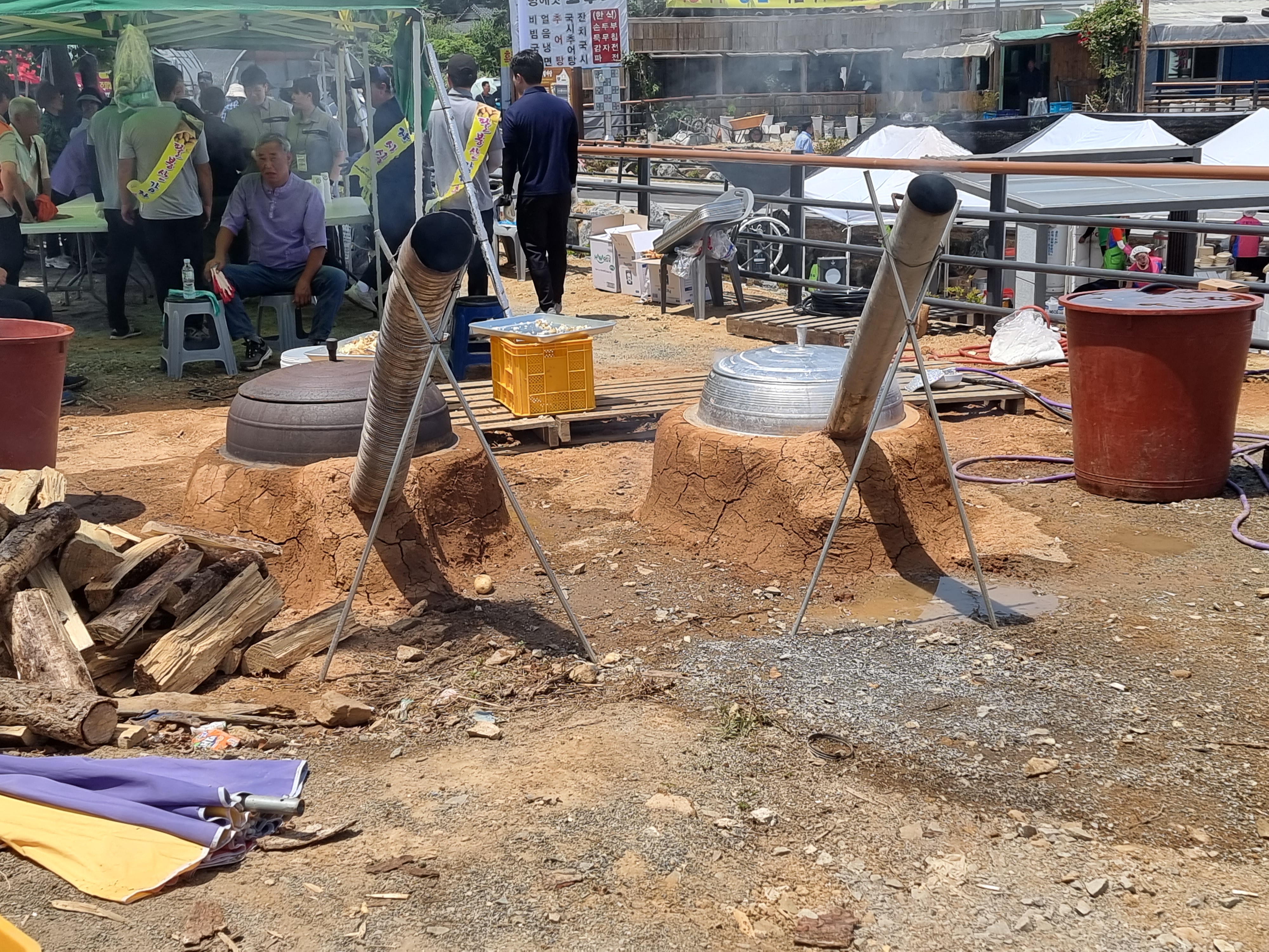 가마솥 두군데서 계속 찌고