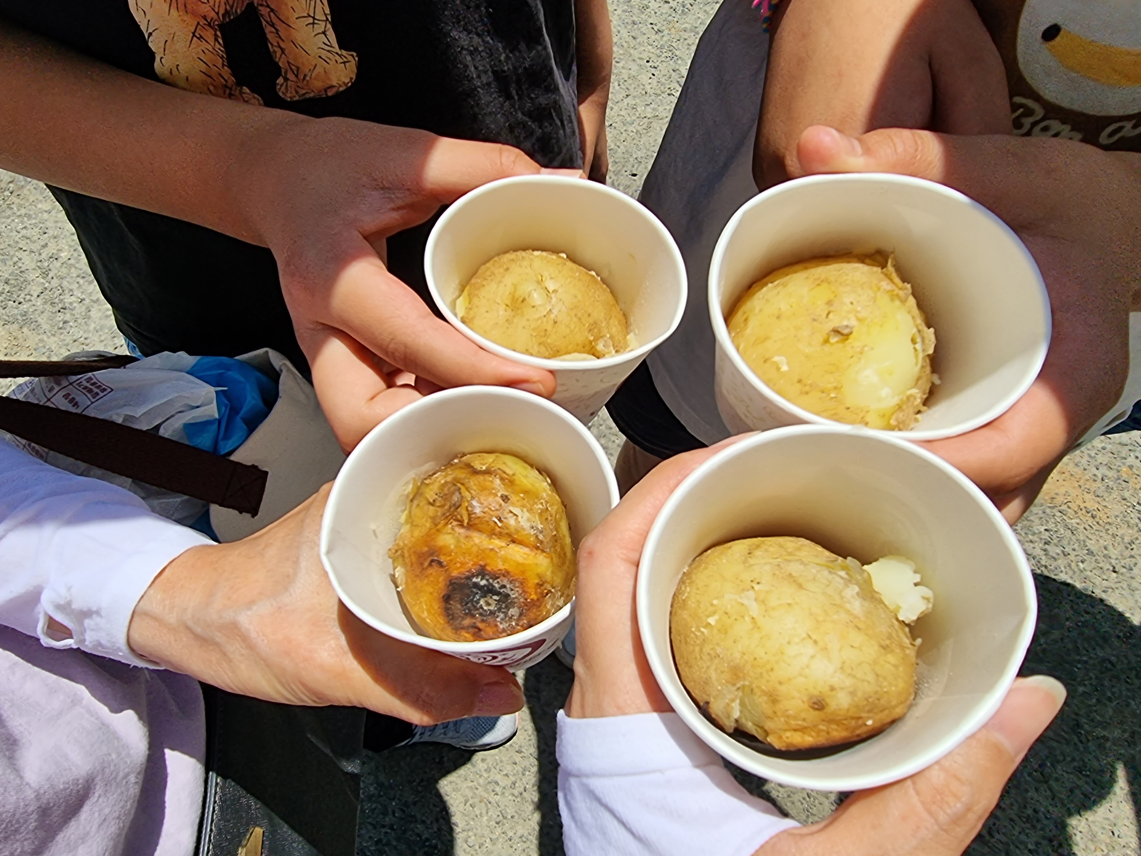 핫도그 사먹고 감자캐기하러~