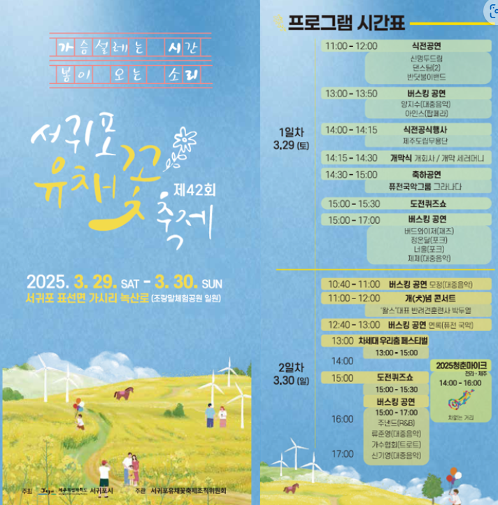 📅 2025 서귀포 유채꽃 축제 일정 & 장소