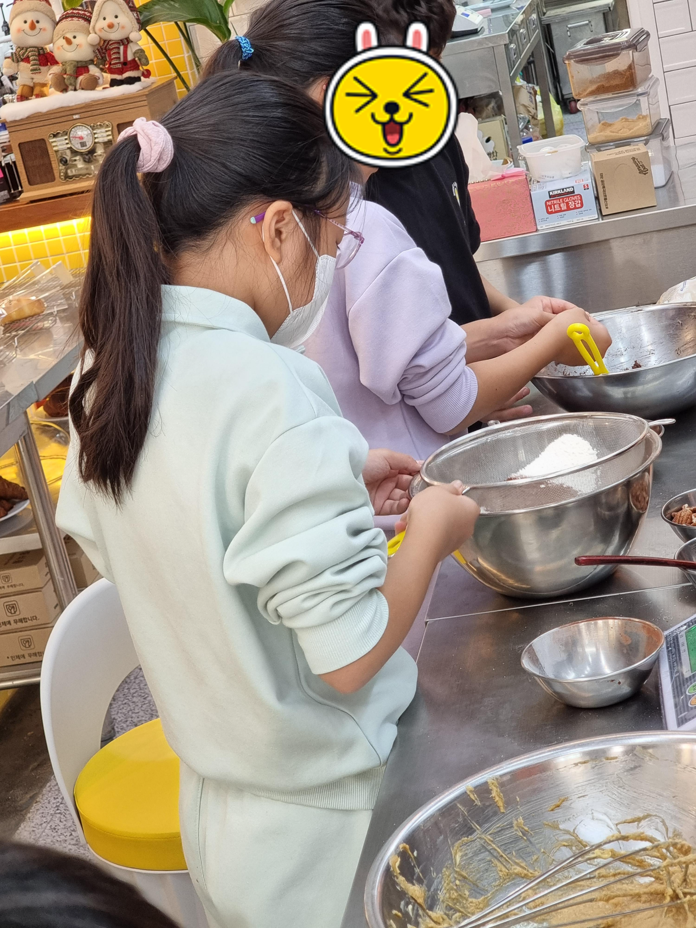 손을 깨끗이 씻고 열심히 베이킹 수업중~