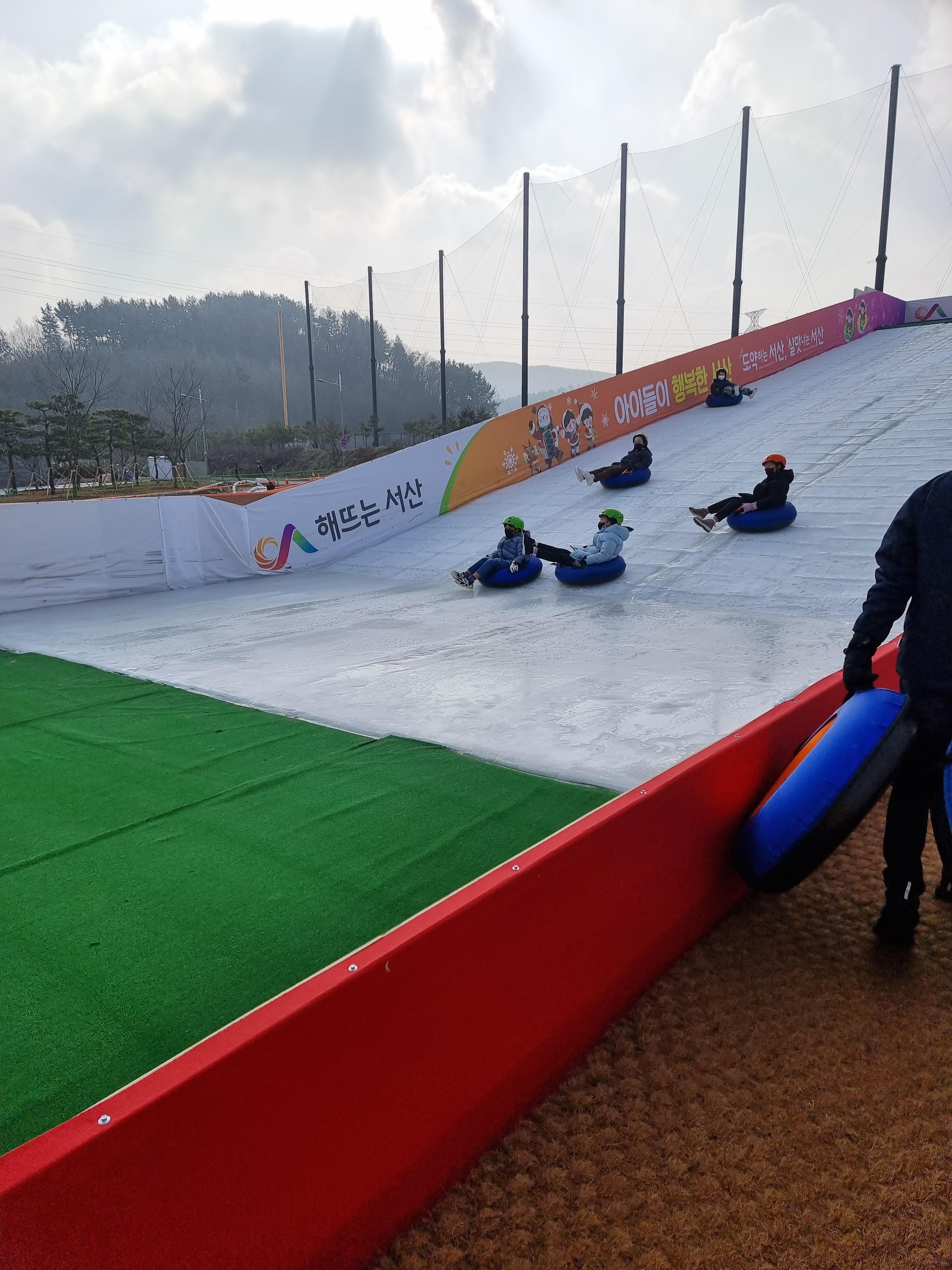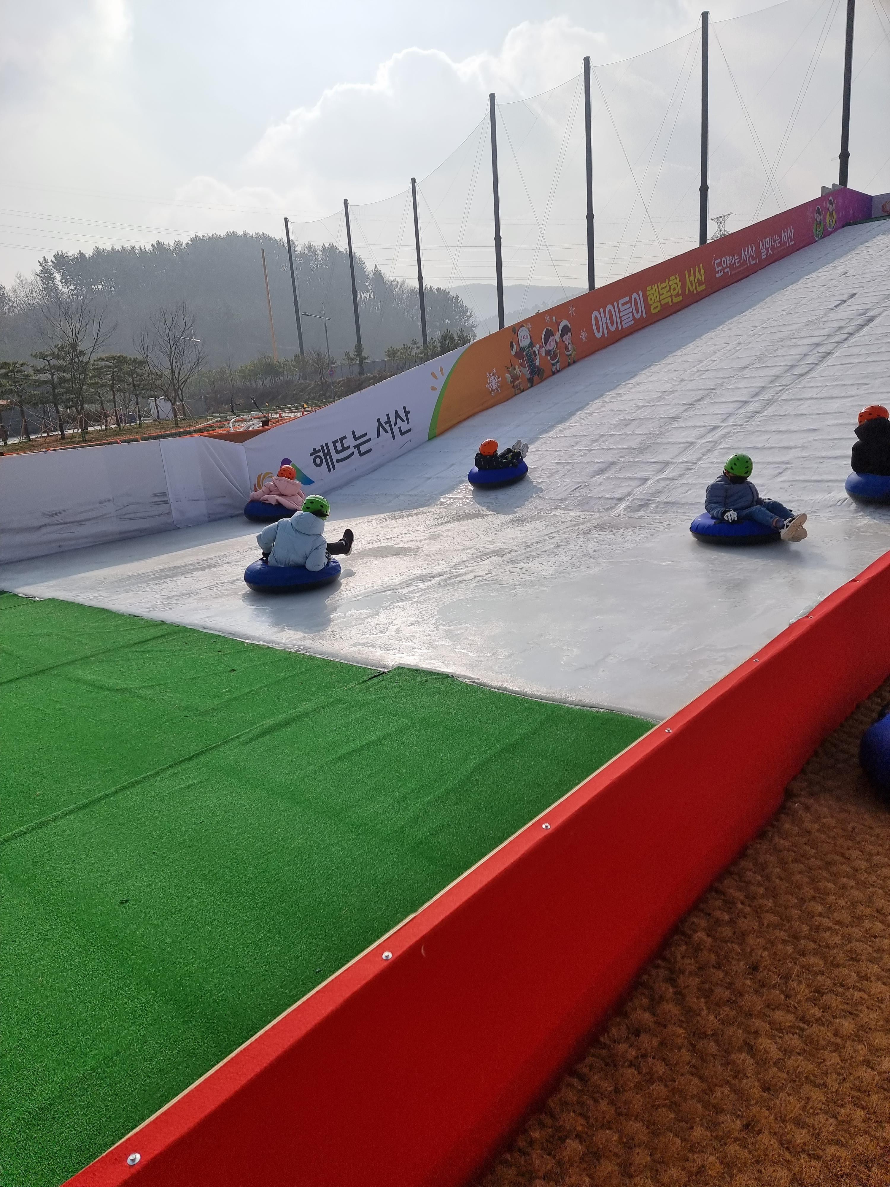 우린 11시쯤 도착해서 얼음썰매 2회차랑