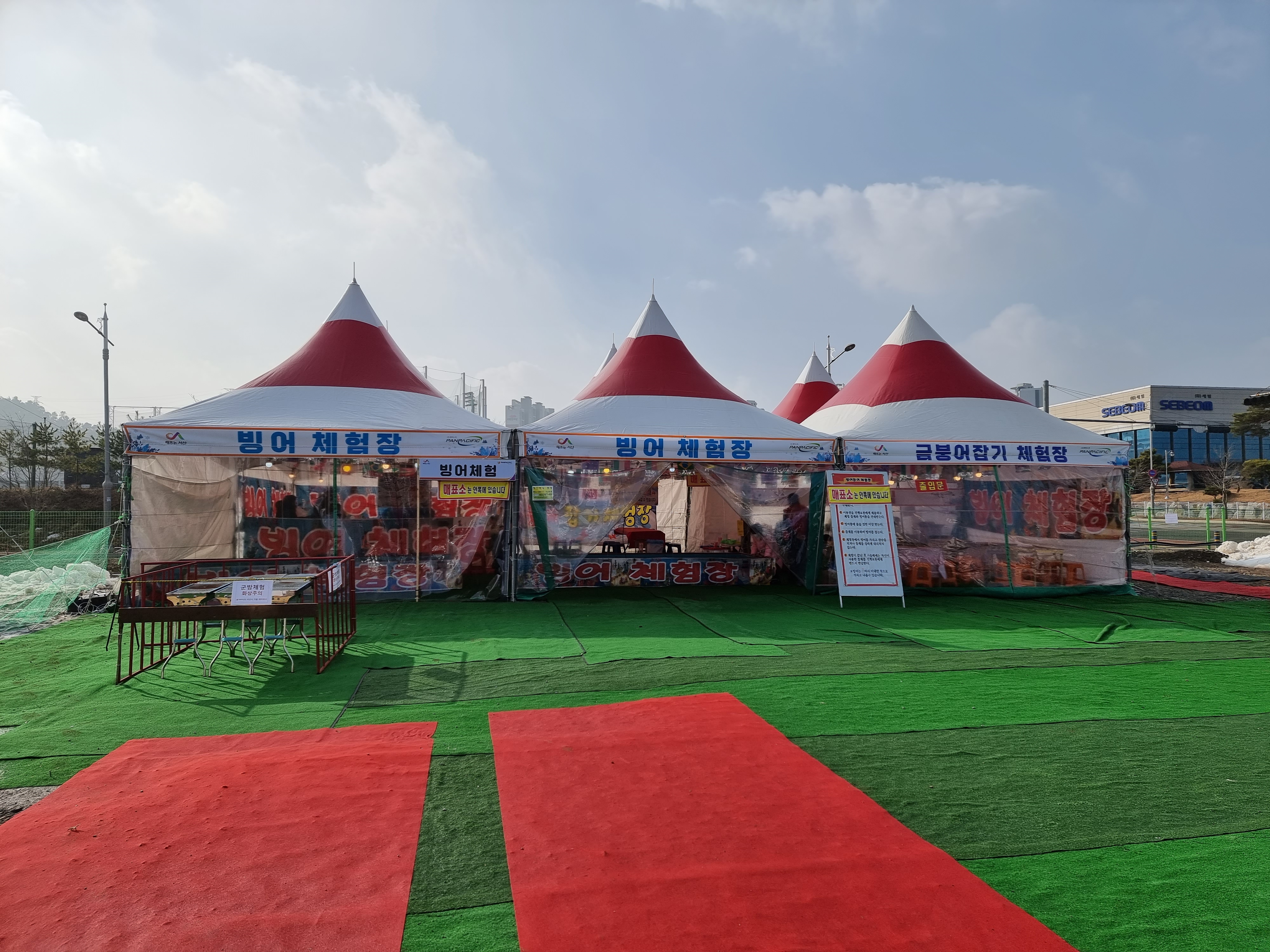 푸드트럭들과 빙어체험장 또